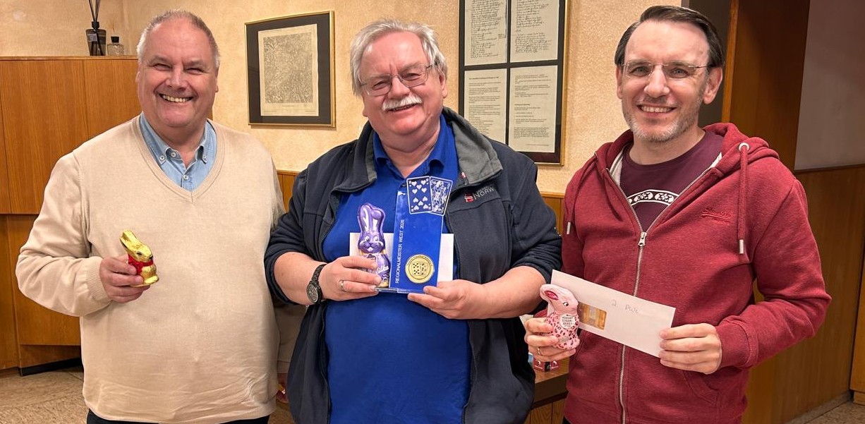 Herzlichen Glückwunsch an den Sieger und an alle direkt Qualifizierten zum Startplatz für die DEM 2026 Rang Nachname Vorname Verein Punkte Platzziffer 1 Lehmann Michael MS DCM 179 12,0 2 Magerstedt Stefan UN O 125 13,0 3 Koch Josef K 1DCK 87 19,0 4 Schwarz Jürgen MK FUX 82 16,5 5 Gaspar Markus MS DCM 80 14,0 6 Hantschel Sascha BOT DKC 73 17,0 7 Magerstedt Jennifer UN O 72 18,5 8 Hartinger Franz E GD88 70 16,5 9 Staab Wolfgang D DRAD 66 15,5 10 Huhn Martin SU CH 58 17,5 11 Richter Jobst UN O 57 17,0 12 Vogel Erik K 1DCK 54 18,5 13 Quade Olaf K 1DCK 52 19,0 14 von der Warth Guido MH FUKS 51 18,0 15 Cremer Erika AC DCC 47 17,0 16 Drees Jutta BN FURH 42 19,0 17 Klein Burkhard MO K92 40 16,0 18 Hegewald Jörg SU MOBU 40 16,5