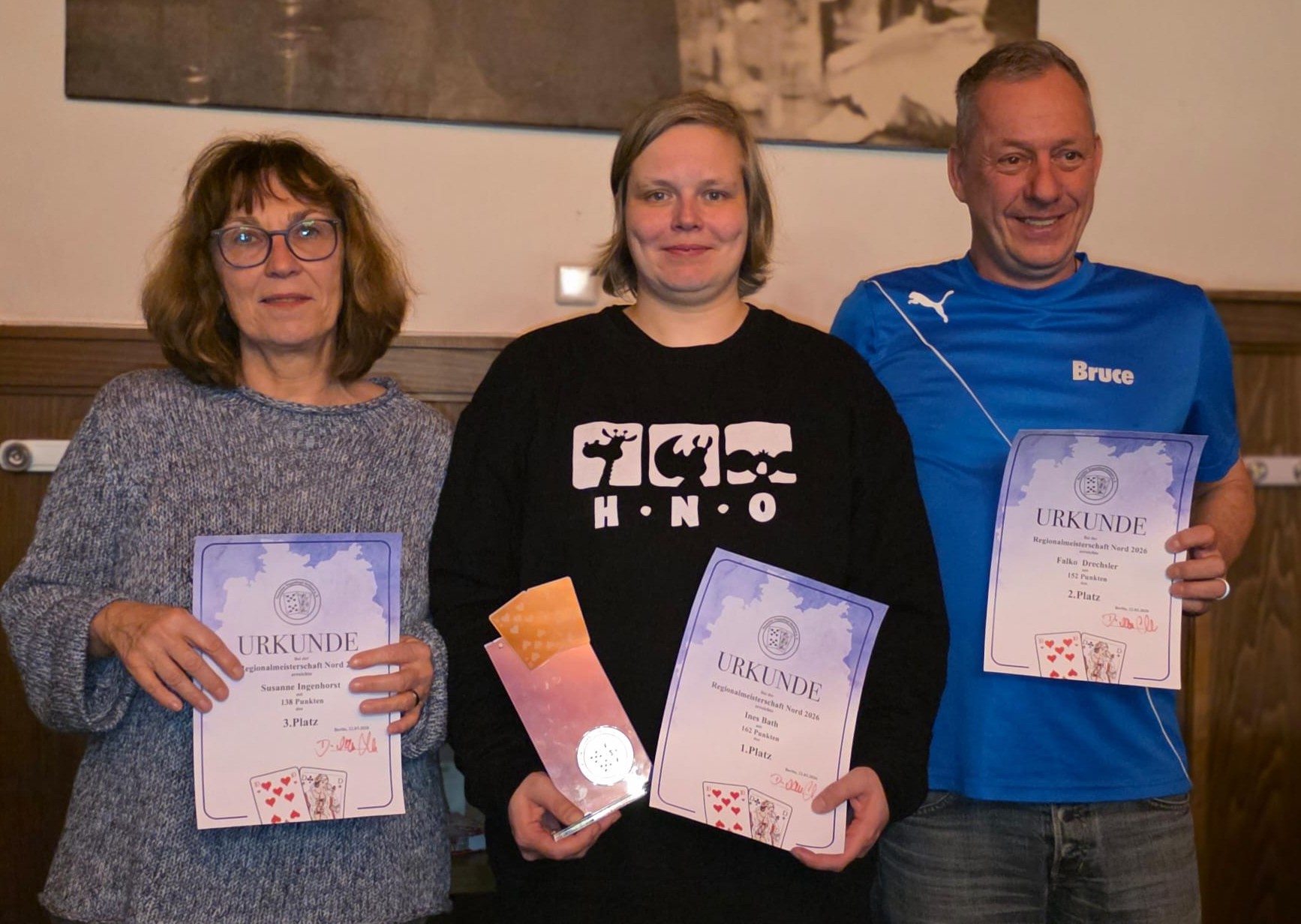 Herzlichen Glückwunsch an die Siegerin und an alle direkt Qualifizierten zum Startplatz für die DEM 2026 Rang Nachname Vorname Verein Punkte Platzziffer 1 Bath Ines B FUEX 162 12,0 2 Drechsler Falko HH FUBU 152 15,0 3 Ingenhorst Susanne LG LÜLÜ 138 16,0 4 Wulff Steffen HRO ED 134 16,5 5 Bergemann Ingo BS 1DDC 114 14,5 6 Hilse Sabine NOM BAZ 98 18,0 7 Faulwetter Silke OL 1ODC 93 14,5 8 Thomsen Johannes H MAZO 93 15,0 9 Genull Oliver NOM BAZ 92 17,5 10 Krybus Hermann-Joachim BS 1DDC 90 17,5 11 Götz Peter OL 1ODC 89 16,5 12 Becker Mike HB EBDC 86 17,0 13 Althoff Michael B FUEX 74 17,0 14 Rübenhagen Rene HL DC 73 18,0 15 Ruzanska Lothar HH DKCB 71 17,0 16 Kurzer Karsten H MAZO 69 18,0 17 Radke Norbert BS 1DDC 68 16,0 18 Heilmann Dirk LG LÜLÜ 68 17,0 19 Otto Rainer NOM BAZ 64 18,5 20 Berents Heike B FUEX 62 15,0 21 Henseleit Michael HRO ED 61 20,0 22 Hans Stephan HH DKCB 60 20,0 23 Bellmer Torsten NOM BAZ 59 16,5 24 Eich Jürgen B FUEX 56 17,0 25 von Krenski Dagmar HH DKCB 51 17,5 26 Schmidt Harald HL DC 51 20,0 27 Zimmer Volkmar Max EE DIAL 49 17,0 28 Brickwedde Wolfgang HH FUBU 47 19,0 29 Lühert Kerstin H MAZO 43 17,0 30 Kloth Andreas HH FUBU 40 17,0